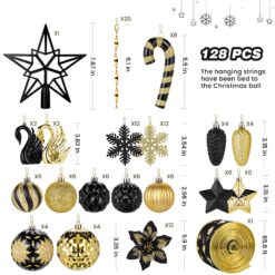128pcs Christmas Balls Ornaments Set with Hanging Strings, Black and Gold