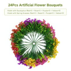 - 🌸【24 Bundles Value Set 】The set includes 24 bundles of artificial flowers in 4 colors including red, purple, fuchsia, yellow, and includes two different types of flower branches. So there are 8 styles of flowers in total, with 3 bouquets of each style.Large set multiple color combinations for your selection,making your decor more distinctive. (Note: The pack does not include any flower pots or baskets.)