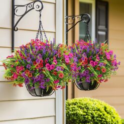 - 🌸【High-quality Materials】The artificial hanging flowers for outdoors are made of high-quality poisonless and harmless PC plastic and silk fabric. You can put this artificial plants & flowers outdoors without any worries because they are double UV-resistant.