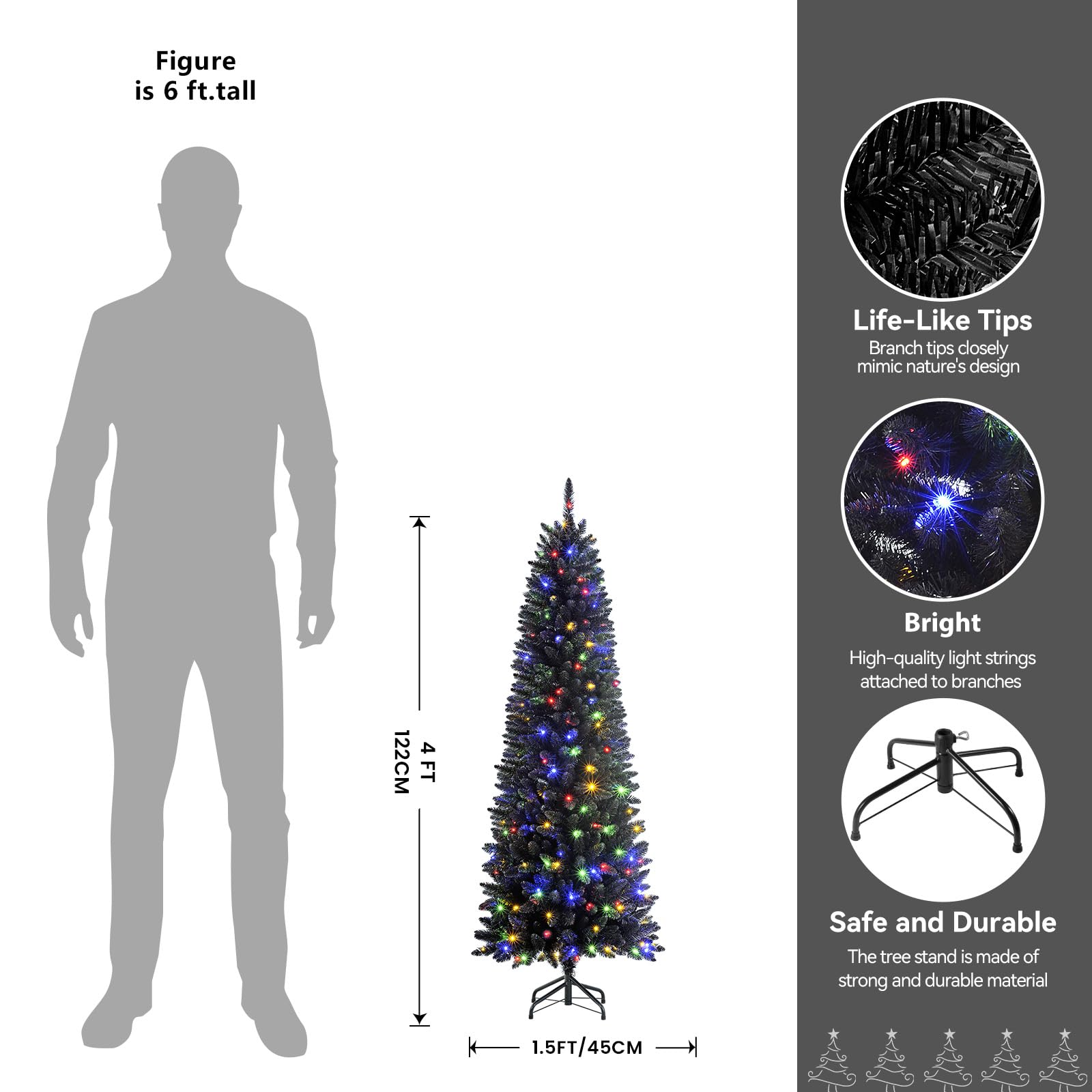 4ft Premium Prelit Warm White & Multi-Color Lights Artificial Hinged Slim Pencil Christmas Tree with Remote Control