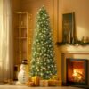 - 🎄【Slim Pencil Design】This Christmas tree is designed as a slim pencil, which is unique and space-saving. The tree stands 5.5 feet in height, with 635 branch tips and a natural green appearance to bring you a lush tree.