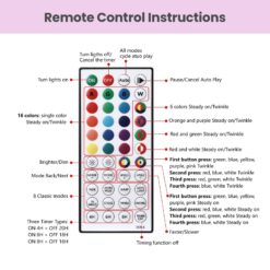 - 🎄【Multiple Lighting Modes】Single color steady on/flashing, two colors steady on/flashing, three colors steady on/flashing,5 colors steady on/flashing,6 colors steady on/flashing,7 colors flashing, flashing modes include breathing, fade, twinkle, jump, waves, strobe. Upgraded the AUTO function, which can realize the loop playback of all lighting modes.