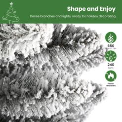 - 🎄【High-Quality and Harmless Material】The tree is made of premium PVC with a fireproof function to keep the tree safe for use.The “snow” has perfectly covered all branch tips which will bring traditional and enjoyable vibes.