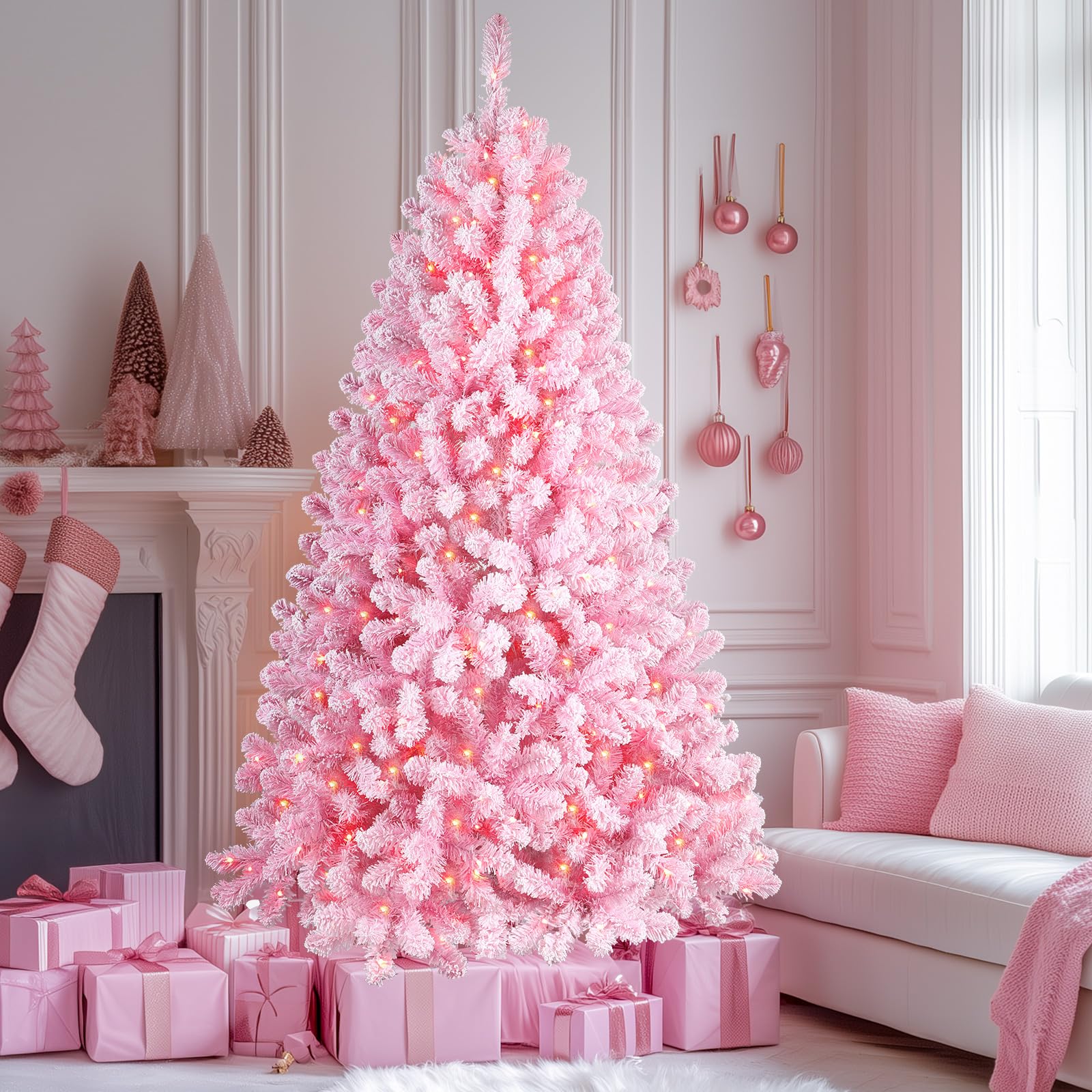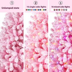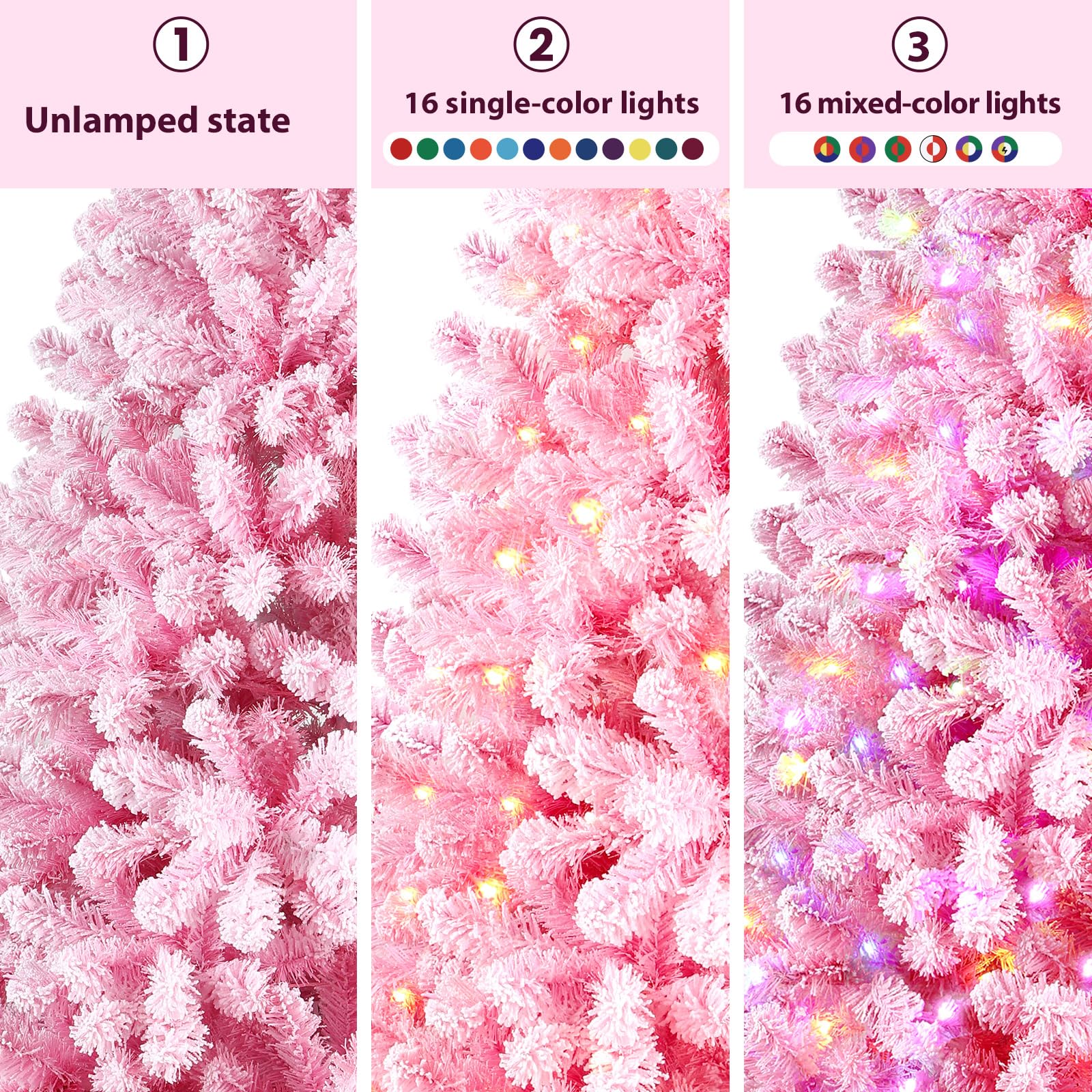 6ft Prelit RGB Lights Pink Flocked Spruce Artificial Christmas Trees