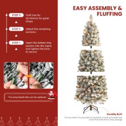 Be the first to review “6ft Prelit Warm White Lights Snow Flocked Artificial Hinged Slim Pencil Christmas Tree” Cancel reply