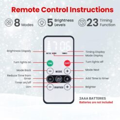 - 🎄【Remote Control Function】A new remote control switch is added on the basis of the transformer switch, which can easily remotely adjust multiple light modes + light brightness + speed + timing types. The remote control operated by one CR2025 Lithium Cell. (Battery included)