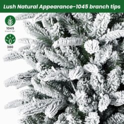 - 🎄【Perfect Size for Christmas Tree】 The artificial Christmas tree is covered in realistic “snow”, the perfect 6 feet tall size, and features 1045 individually crafted branch tips. This is the layered tree made of two materials, which is different from traditional ordinary branches.