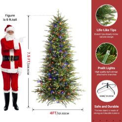 - 【Ideal Size for Versatile Decoration】 This pre-installed lighted Christmas tree stands 7.5 feet tall. This pre-lit tree serves as a stunning centerpiece in living rooms, offices, or holiday events. Decorate it with ornaments, wreaths, and more to personalize your celebration.