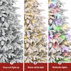 - 【Multi-Color RGB Lights】 Artificial flocked Christmas tree Pre-installed 450 RGB lights you can choose the appropriate light mode to add festive atmosphere to your home. The prelit RGB lights have a memory function, and when you turn the lights on, they return to the mode they were in when they were off.