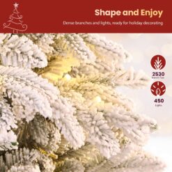 - 【High-quality Materials】Made of environment-friendly PE material, this pre-Lit snow flocked Christmas tree are odorless and harmless to human body for safe use. With exquisite craftsmanship, it is non-flammable and not easy to fade and deform, providing you with long-term service.