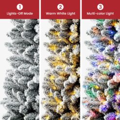 7.5ft Pencil Snow Flocked Artificial Xmas Tree with Multi-Color Lights