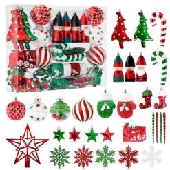 - 🎄【Imaginative Design】 The ball decorations come in different finishes and shapes, including not only Christmas balls, but also Christmas cars, gloves, star shaped tree tops, Christmas socks, pentagrams, cane decorations, soldiers, and more. Shiny and matte decorations make your Christmas tree look stunning.