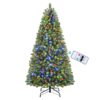 - 【Multi-Color LED Lights】The pre lit artificial Christmas trees come with 640 LED warm white & multi color lights. you don’t need to install the lights string by yourself. You can choose the proper lights mode at will to make it more beautiful.