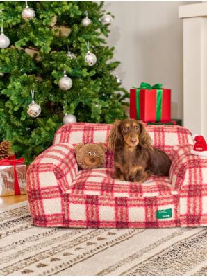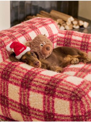 It comes with a detachable teddy bear and Santa hat that can be used as sofa décor or worn by your pet.