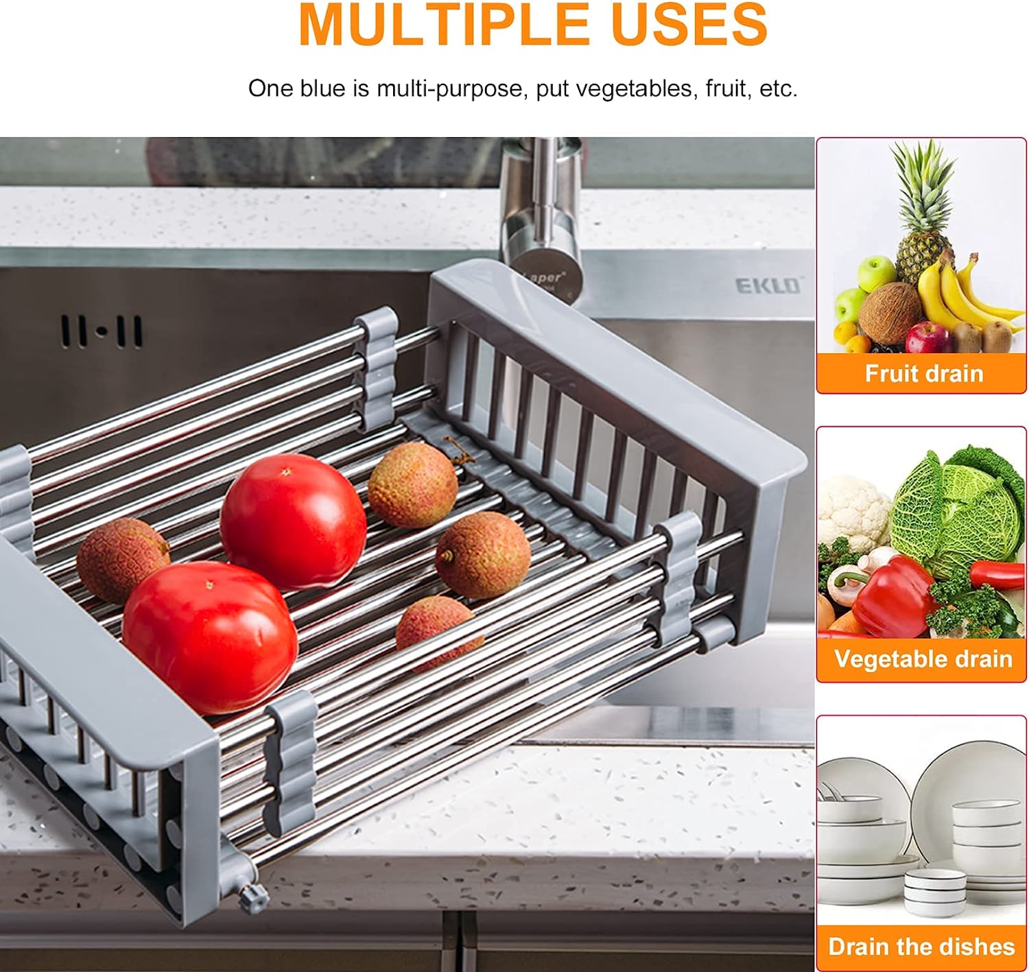 Multifunctional use – The sink drainage shelf can drain dishes or rinse vegetables and fruits. It can contain several cups and dishes at the same time. After cleaning, vegetables and fruits can also be put at the top to drain the water, comfortable to use.